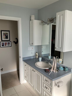 This bathroom renovation involved transforming the space to better suit the homeowners' needs and lifestyle. The renovation included the removal of a tub to make way for a custom shower complete with a bench, offering a more luxurious and functional showering experience. Additionally, the washer and dryer were relocated to the bathroom, eliminating the need for the homeowners to go to the basement for laundry tasks. This thoughtful reconfiguration not only enhances the bathroom's aesthetics but also significantly improves its practicality and convenience for the homeowners.